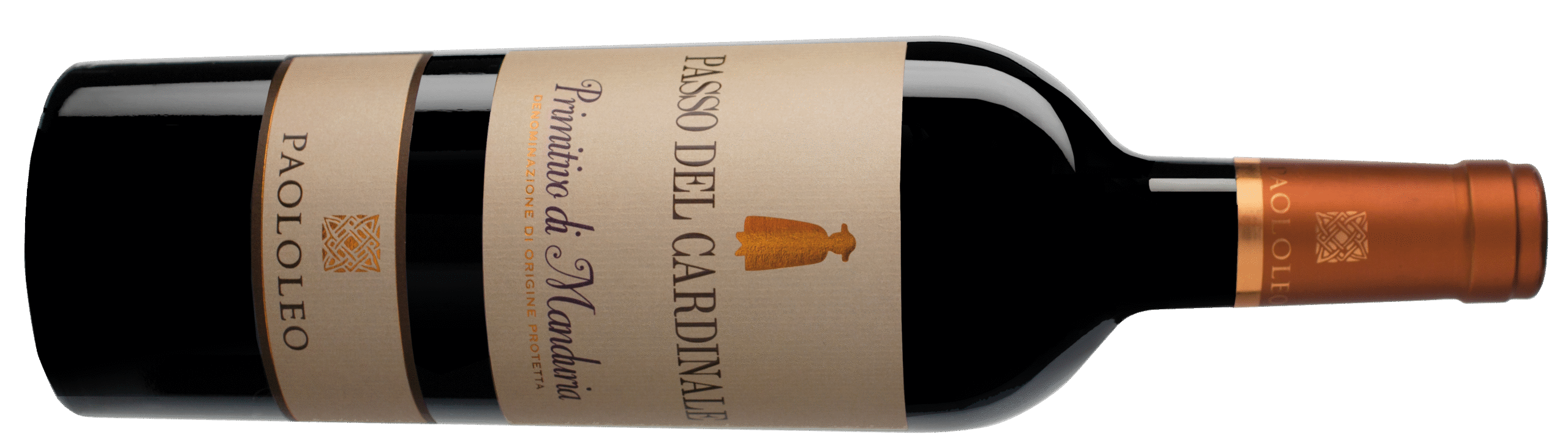 Passo del Cardinale Primitivo di Manduria DOP 2023 – 14% vol. – Ottenuto da Primitivo, nell’area rurale di Manduria e Sava, allevato secondo il tradizionale alberello pugliese, da vigne di 40 anni, a potatura corta, con speroni a due gemme, su suoli sabbiosi, con una resa per ettaro di circa 1,2 kg di uva per pianta. La vendemmia viene effettuata alle prime ore del mattino con temperature fresche per preservare la tipicità del vitigno. Dopo la raccolta l’uva viene diraspata e il pigiato fermenta in acciaio a temperatura controllata per 8-10 giorni, dove la macerazione sulle bucce dura 15-18 giorni per ottimizzare l’estrazione delicata di tannini e antociani. Dopo la malolattica matura per 3 mesi in barriques di rovere americano e 6 mesi in acciaio. Dopo un colore rosso rubino dagli eleganti riflessi granati., ha al naso un intenso bouquet di frutti a bacca nera, principalmente ribes nero che sfuma su spezie, poi su note di liquirizia e caffè. Al palato ha struttura, tannini vellutati e avvolgenti, poi è fresco, elegante, persistente con un finale di confettura di frutti di bosco e spezie.