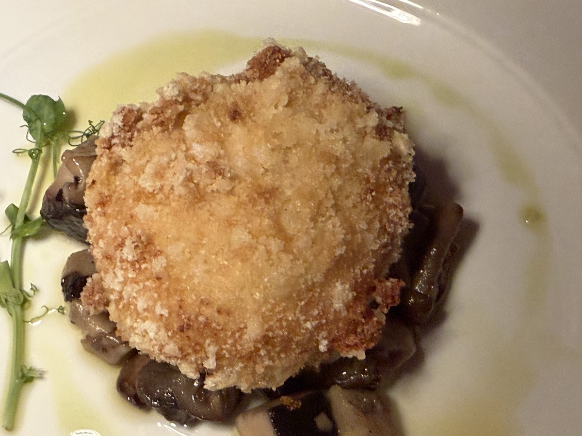 La burratina fritta farcita di Gorgonzola su letto di funghi