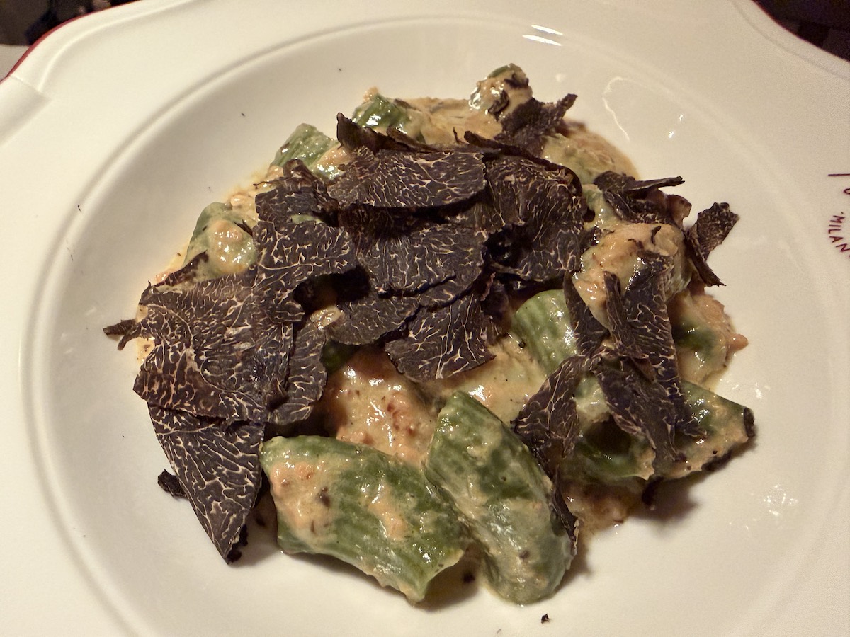 Maccheroncini al ragout bianco di vitello con funghi e tartufi Il riso al salto